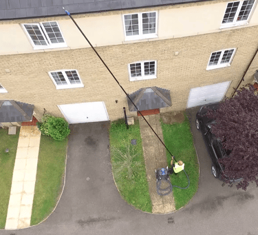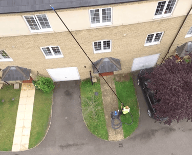 Die herkömmliche Reinigung erfordert Leitern, Hebebühnen und gefährliches Arbeiten auf dem Dach.